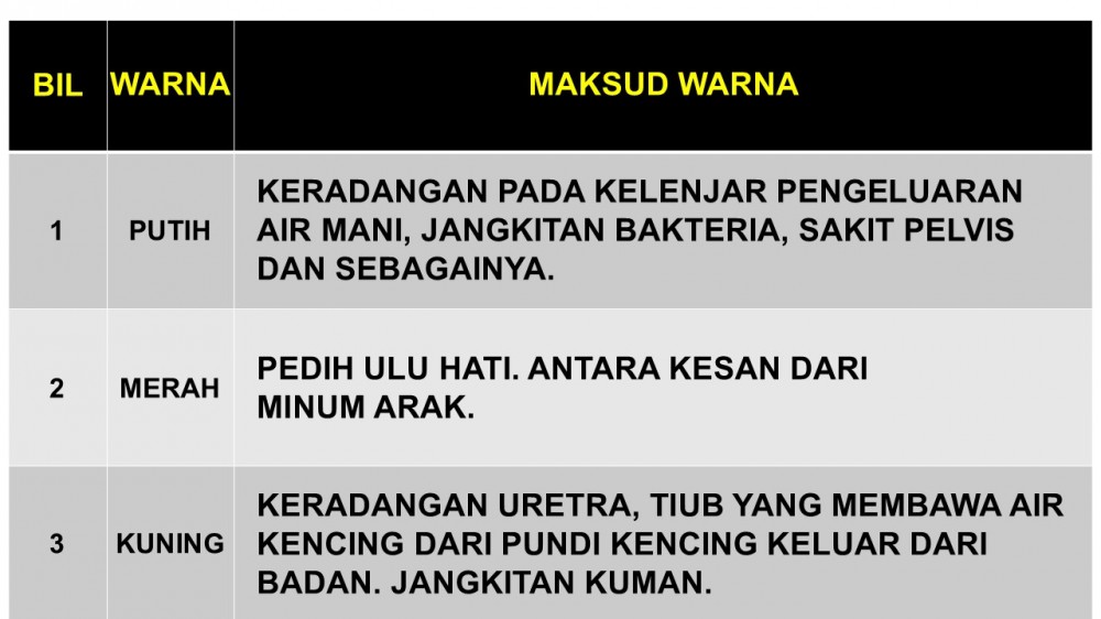 MAKNA WARNA PADA TAMPALAN SIANG (LELAKI) SELEPAS PENGGUNAAN 6-10 JAM